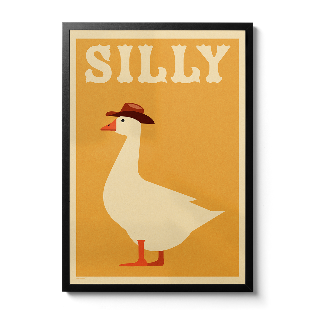 Inspired by a phrase that we say a lot in our house to our two young boys. We've been looking to create some new art for their bedroom and we felt like a goose in a cowboy hat fit the bill (pun intended). We've also added a top hat option for our goose friend too, because we couldn't think of much sillier or cuter.